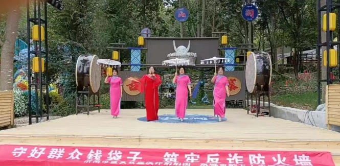 下午,宣传团转赴利山涧景区,开展反诈防非公益宣传活动。志愿者们充分发挥文艺特长,通过快板、小品、歌曲等生动有趣的表演形式,向景区游客普及防范金融诈骗和非法集资的知识。她们用通俗易懂的方式讲解常见诈骗手法,寓教于乐,有效提升了游客的防范意识和识别能力。现场气氛热烈,游客们对奶奶们充满活力的表演和耐心的讲解报以热烈掌声。