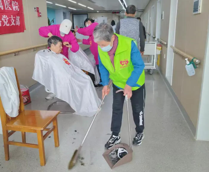 活动现场,“银龄义工”的旗帜格外醒目。所有被服务人员都经过登记后再接受服务,活动组织方还准备了详细的服务登记表。理发的过程中,志愿者们及时清理落地的头发,保持病房环境整洁。
