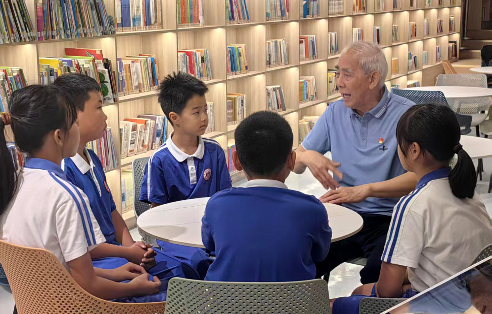 曾担任宝安区西乡街道河西村党支部书记的林栋章,向小学生开展红色教育