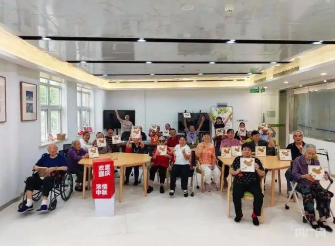 国庆中秋假期,杭州缤纷康养中心组织老人开展节庆手工创作(央广网发 受访者供图)