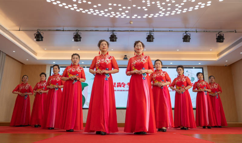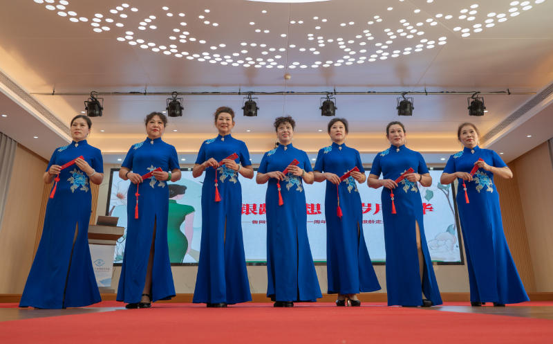 走秀展演环节将活动推向高潮。明湖之秀艺术团、齐鲁旗袍艺术团、领秀城旗袍艺术团、月新非遗文化艺术团等十余支优秀中老年艺术团体相继登场。参演者们身着旗袍、汉服、马面裙等中华传统服饰,或端庄灵动,或飘逸大气,或典雅华贵,在T台上演绎了《爱的画卷》、《盛世国风》、《中国茶》、《剪云裳》等一系列精彩节目。她们用自信的步伐与优雅的仪态,生动诠释了中华传统服饰的文化底蕴与东方女性的独特魅力,现场掌声不断。
